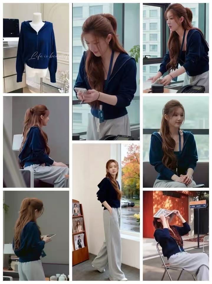 【露絲同款 許我耀眼藍色針織拉鍊開衫】