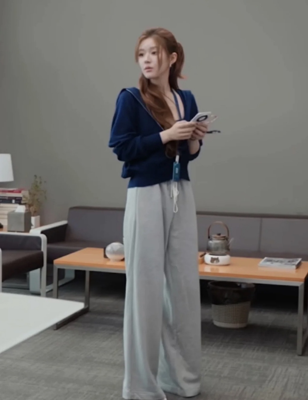 下身搭灰色運動褲/牛仔裙 → 立刻變身露絲同款氣質Look