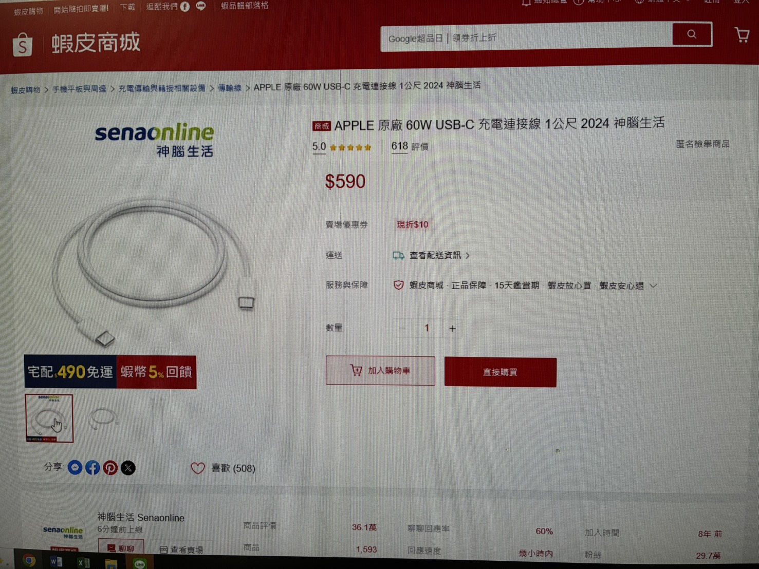 現貨 APPLE 原廠 60W USB-C 充電連接線 1公尺