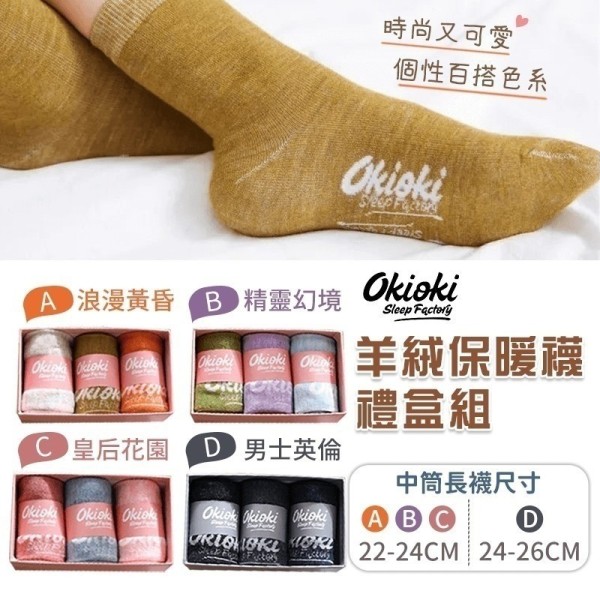 【OKIOKI 秋冬3色羊絨保暖襪(禮盒組)】