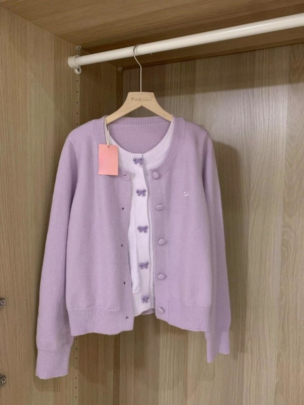 1207 【268246 韓系刺繡蝴蝶結假兩件針織外套(共兩色)】