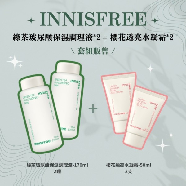 1210 【Innisfree綠茶玻尿酸保濕調理液-170ml+櫻花透亮水凝霜-50ml(各兩瓶共4瓶)】