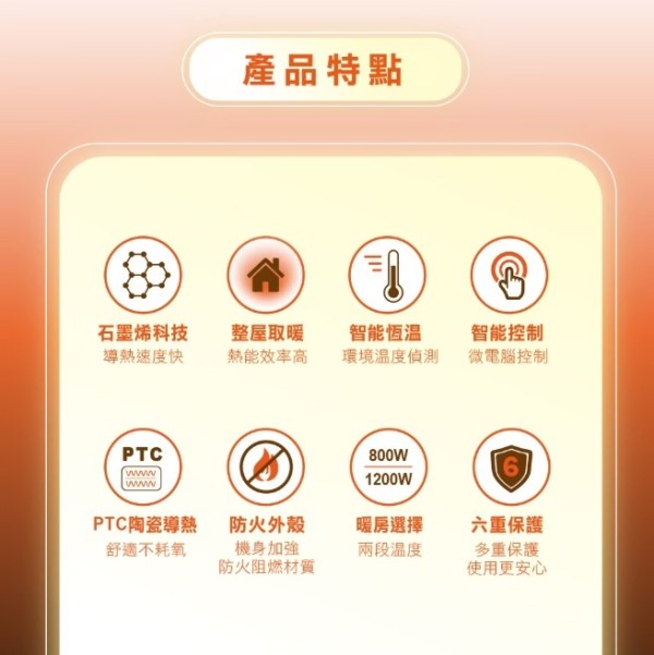 ◆PTC+石墨烯發熱,發熱效率高出20%
