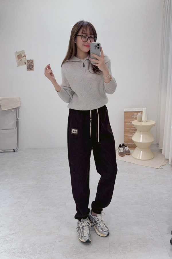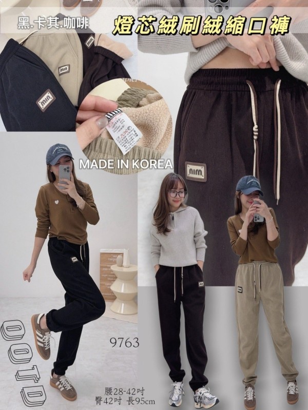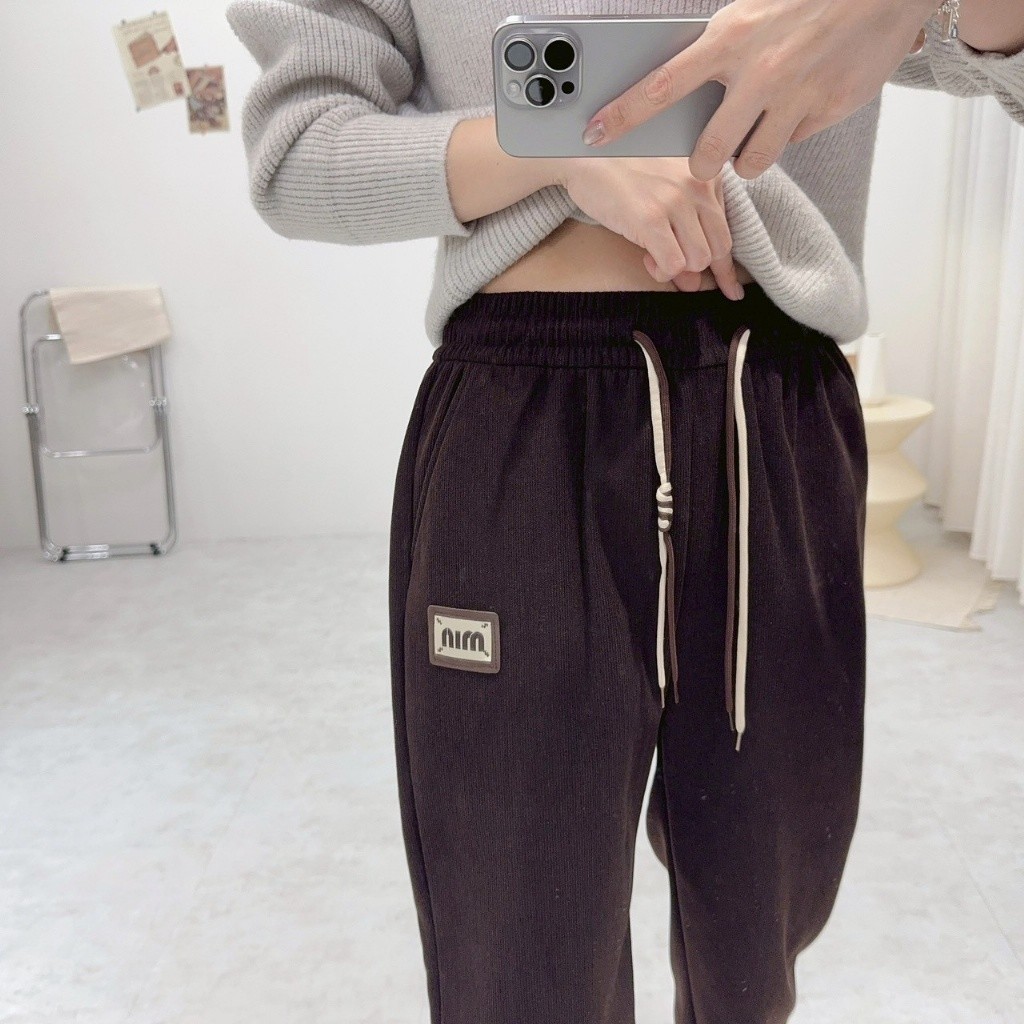 韓國??燈芯絨刷絨縮口褲