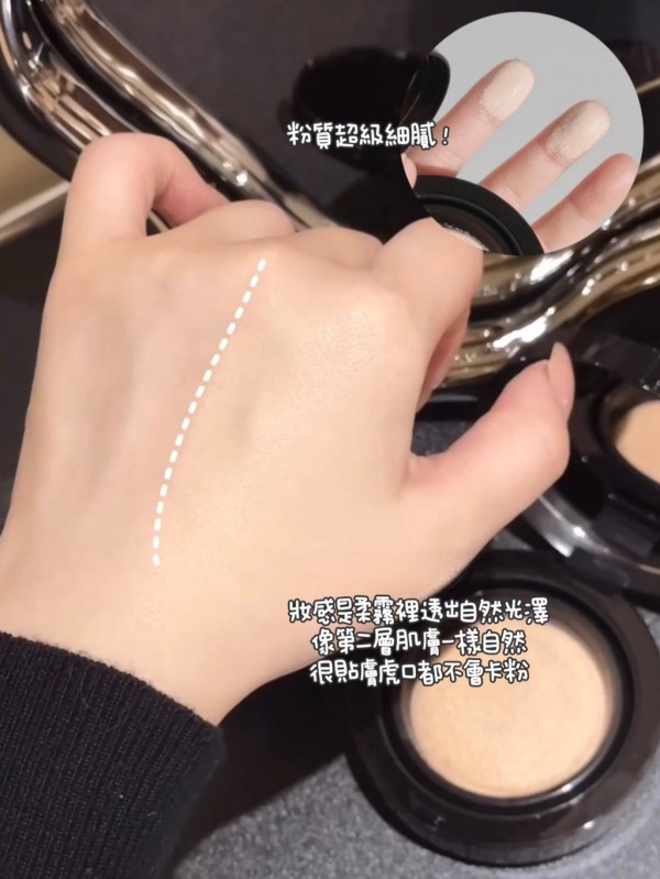 妝感是柔霧裡透出自然光澤,臉看起來有精神又高級就像第二層肌膚一樣自然,粉體細緻輕盈,上臉立刻貼膚,不是厚遮,而是把膚質修得很漂亮?