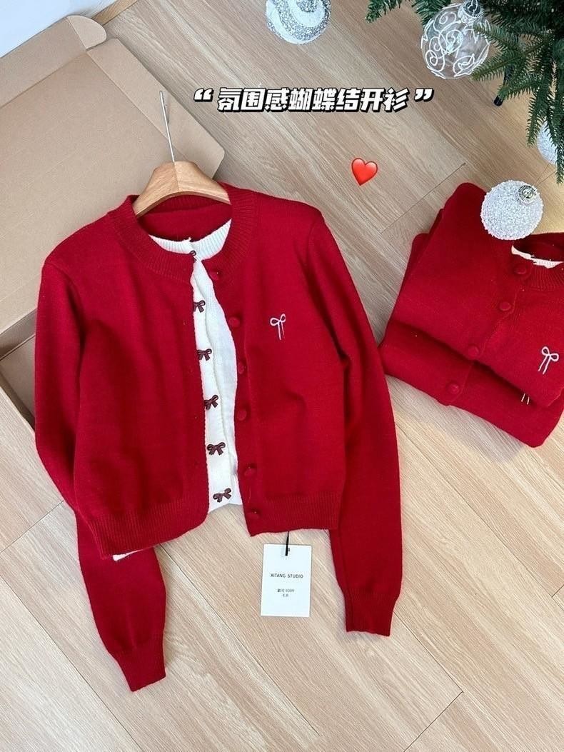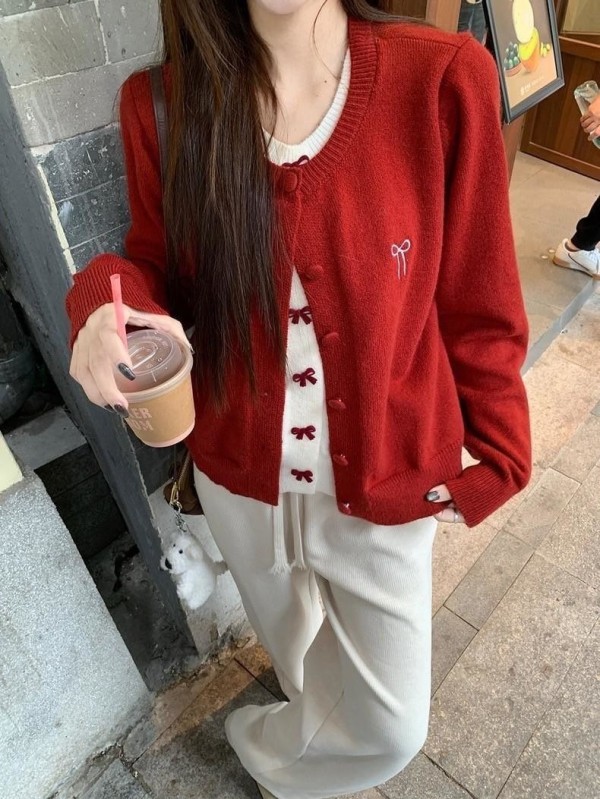超有節日氛圍感的蝴蝶結針織,一件直接穿出韓系層次感?