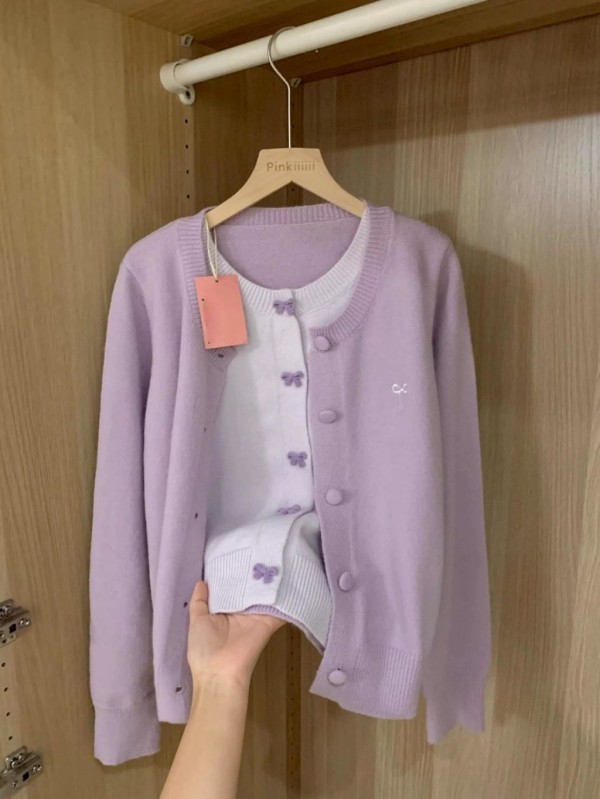 【268246 韓系刺繡蝴蝶結假兩件針織外套(共兩色)】