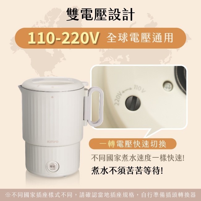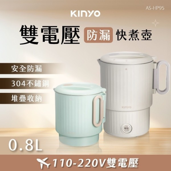 【KINYO~便攜式雙電壓快煮壺 (綠/白) AS-HP95(G/W)】