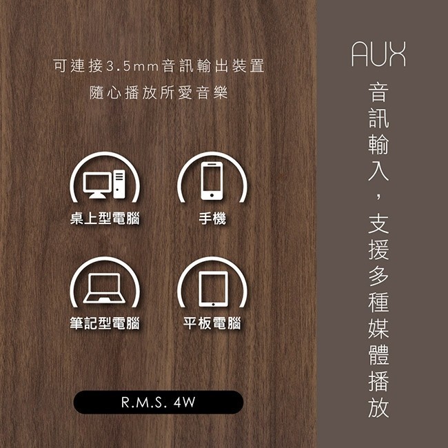 -輸出功率:R.M.S. 4W