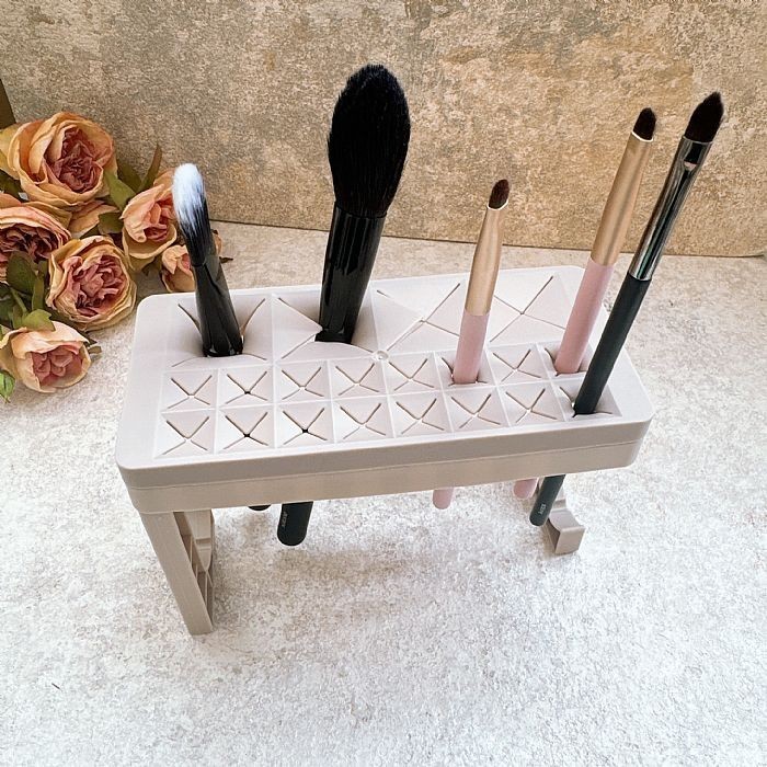 ?有大小不同的孔洞,無論是小眼影刷還是大蜜粉刷都能穩穩夾住,各種尺寸的刷具都能找到自己的位置