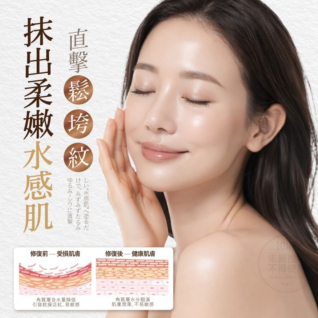 ✅多重玻尿酸:讓肌膚長時間維持澎潤狀態,細紋自然不容易被放大