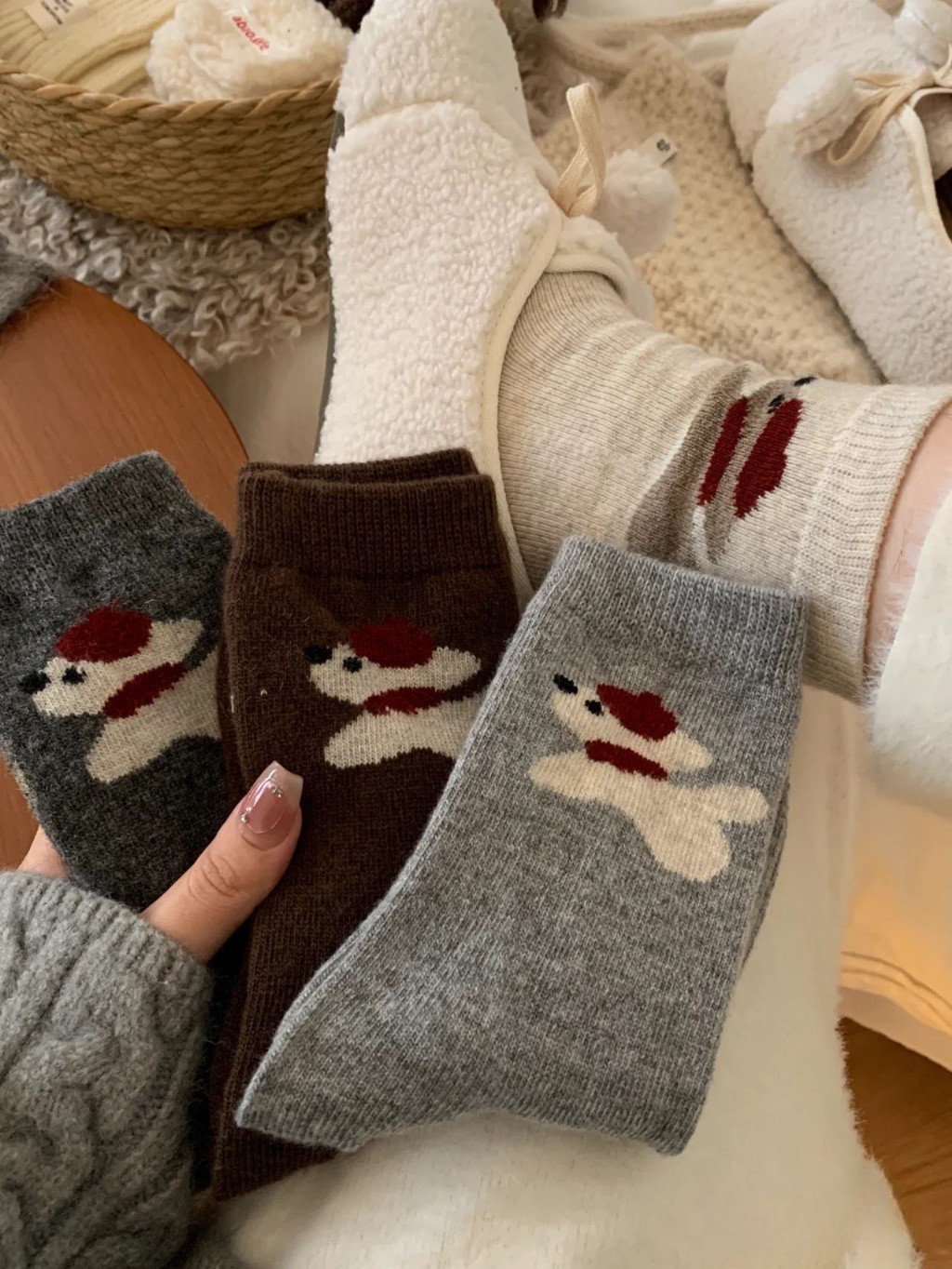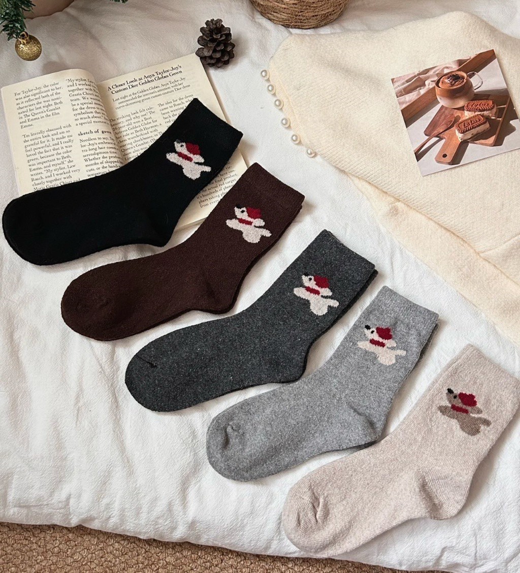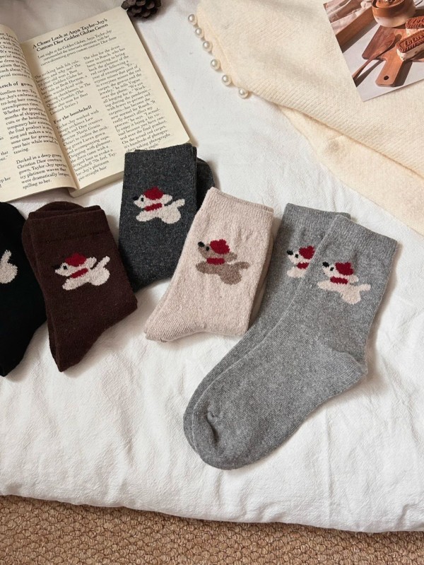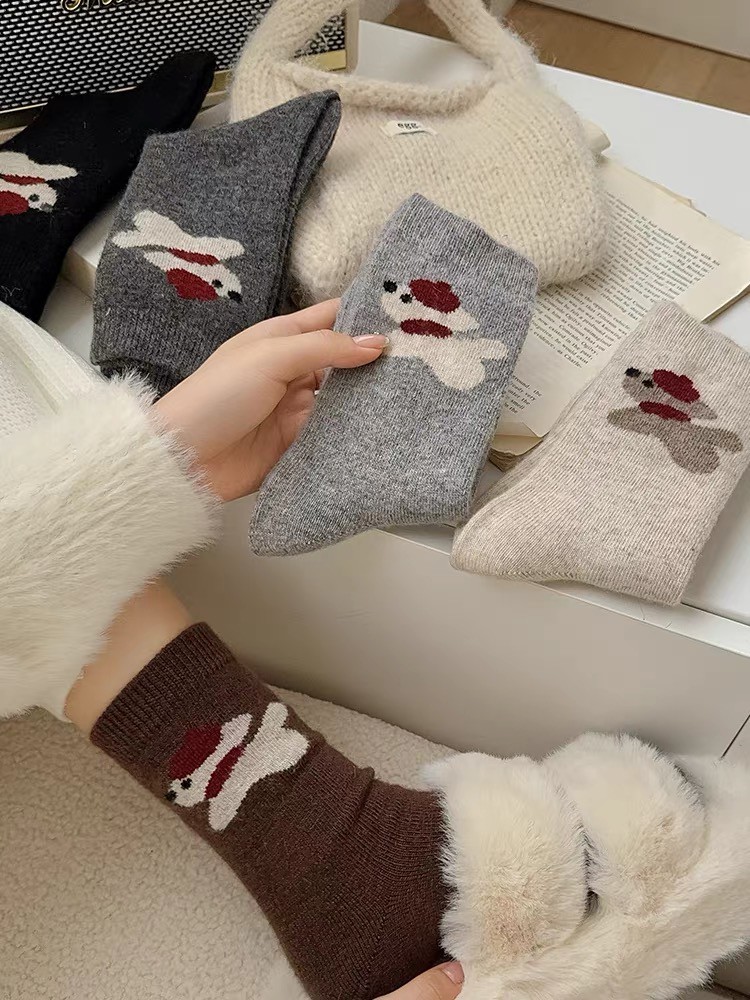 0308 【日系簡約百搭|戴帽狗狗中筒襪-8雙組】