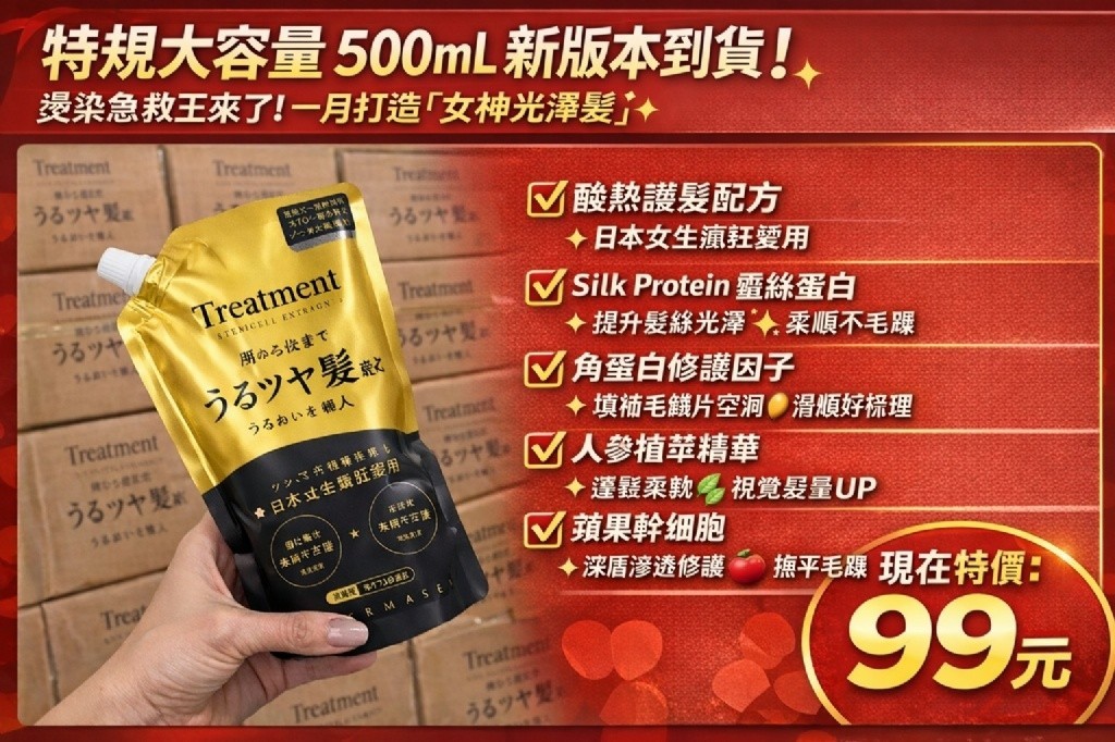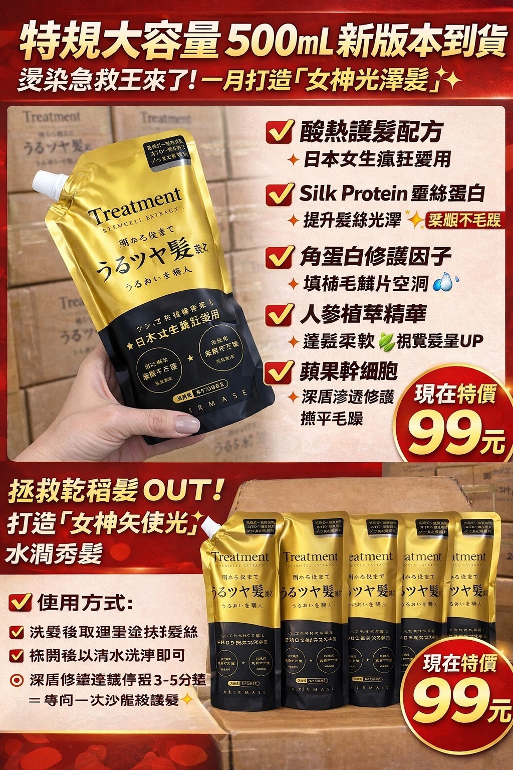 日本專業監製,配方全面進化,專門針對染燙後的枯黃、分叉問題。