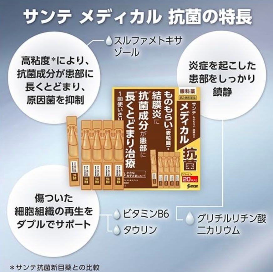 3.持續性磺胺藥劑,具有抵抗造成結膜炎和針眼的抗菌作用