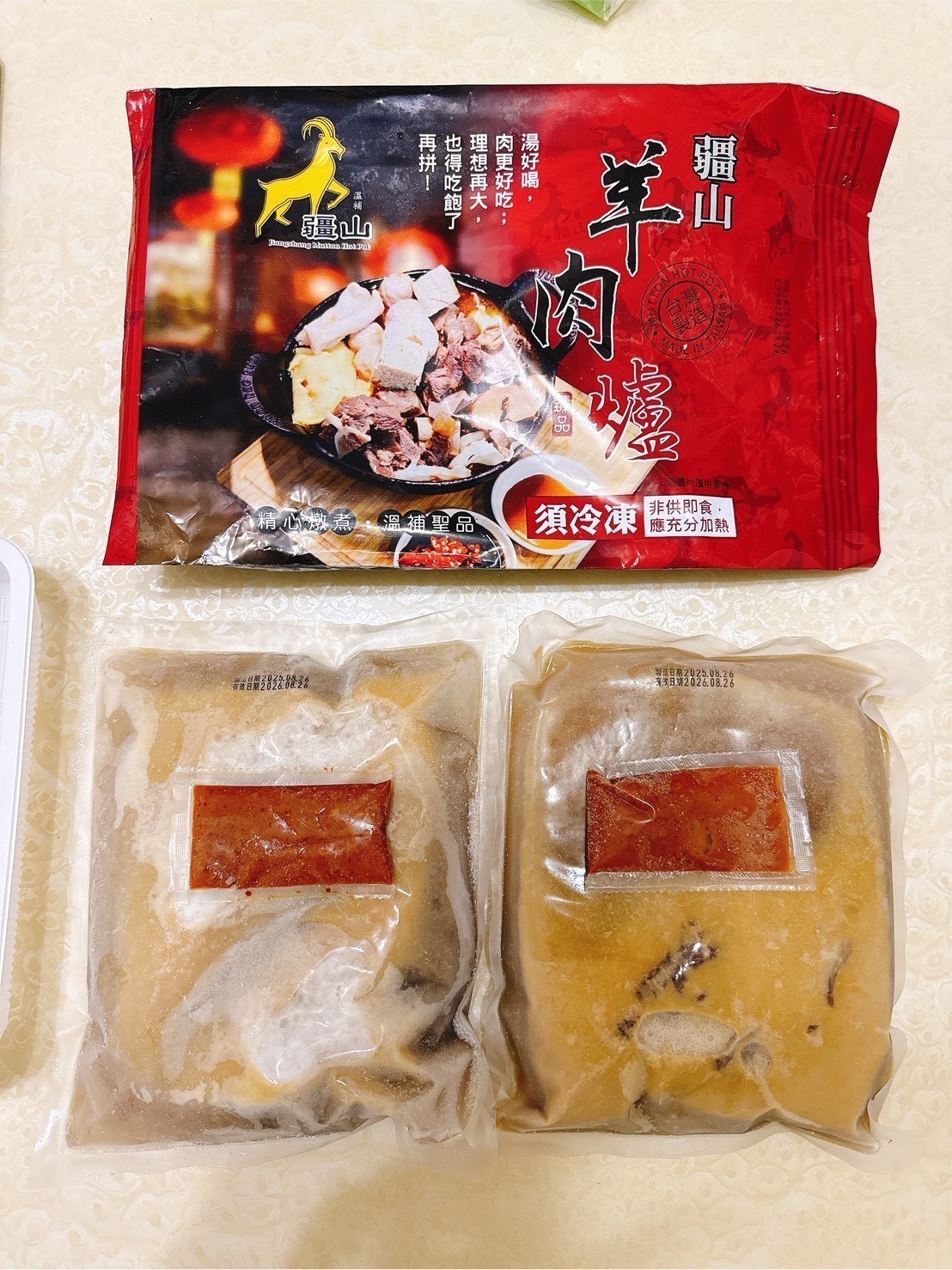 一盒內有2包湯(羊肉皆跟湯包一起)