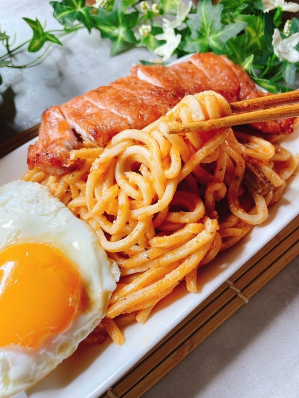加入喜歡的食材~煎顆蛋、肉片蔬菜