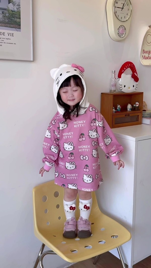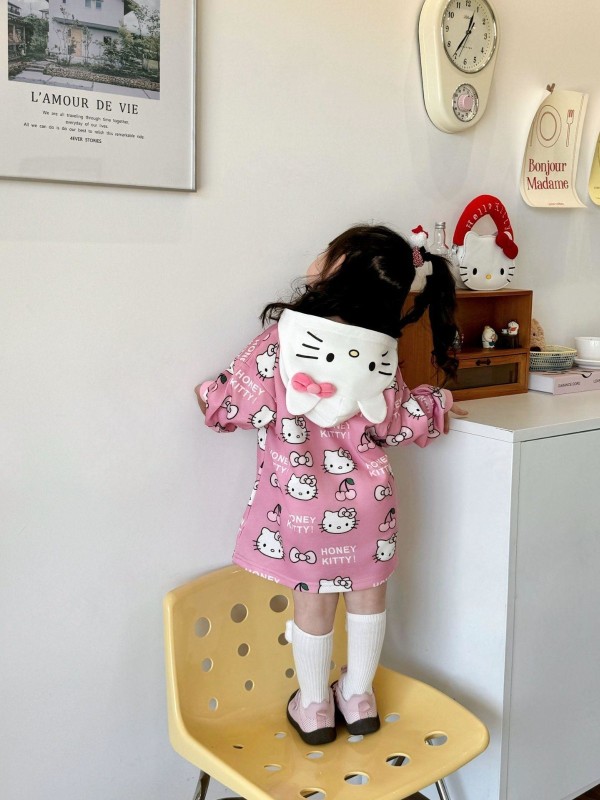 店內現貨_秋冬日系甜美可愛KT貓連帽長版衣