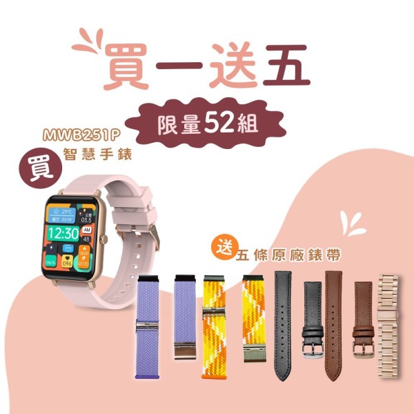 【人因科技MWB251 心率血氧藍牙通話手錶(買一送五)】