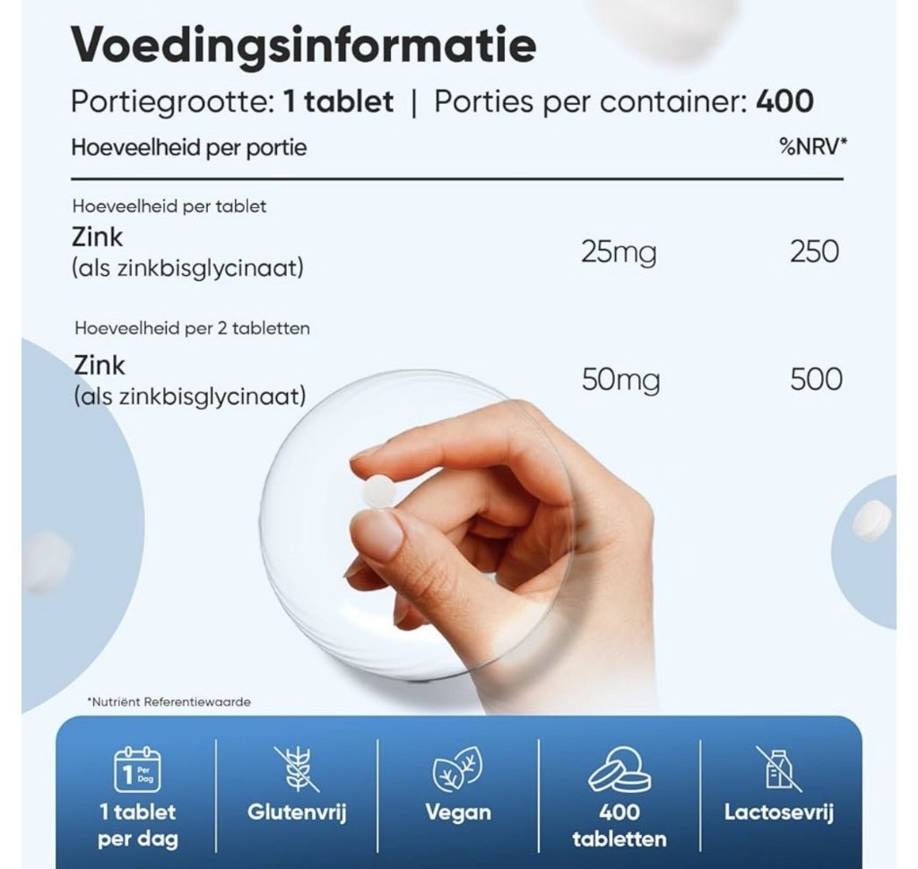 ✔ 每錠含量:25mg 高吸收鋅(雙甘胺酸)