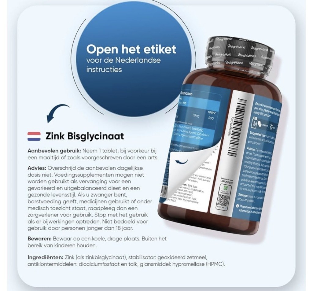0426 【英國 WeightWorld ÉCLAT 鋅能修護錠|Zinc Bisglycinate 25mg】