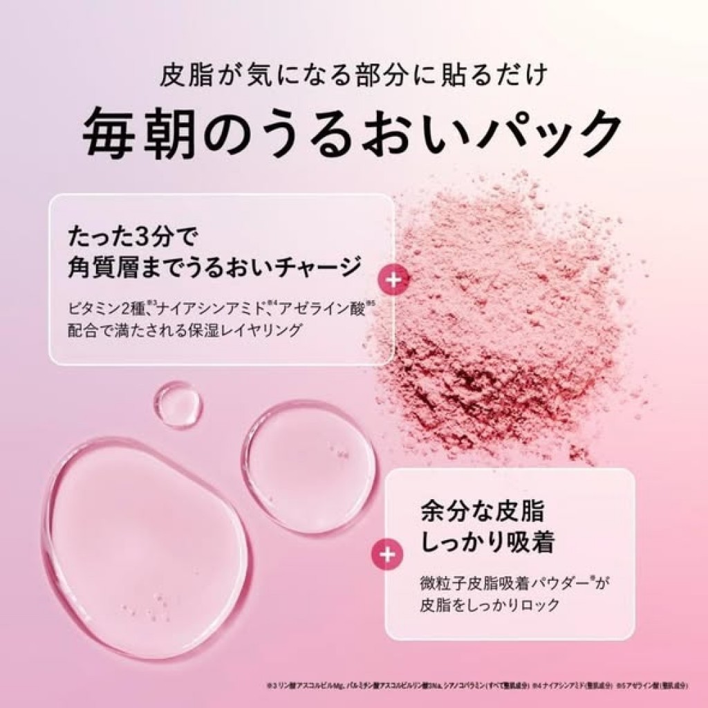 這款的精華裡有皮脂吸附粉末,不是那種單純濕敷、把水分帶走的,而是直接針對多餘油脂下手,妝前先控住?